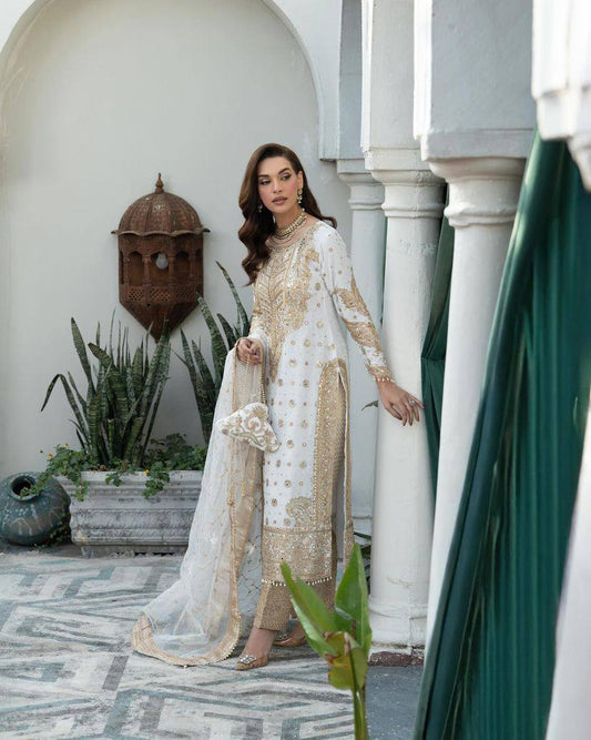 White Golden Chiffon Party Suit