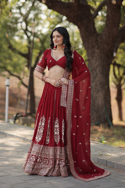 Maroon Sequin Embroidered Faux Blooming Georgette Lehenga Set