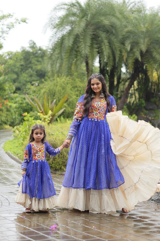 Mother Daughter Matching Lehenga With Gamthi Work Blue Green Navaratri Combo By Stylish Ethnic