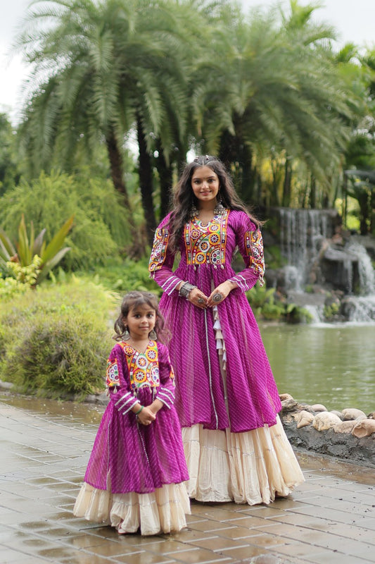Mother Daughter Matching Lehenga With Gamthi Work Purple Navaratri Combo By Stylish Ethnic