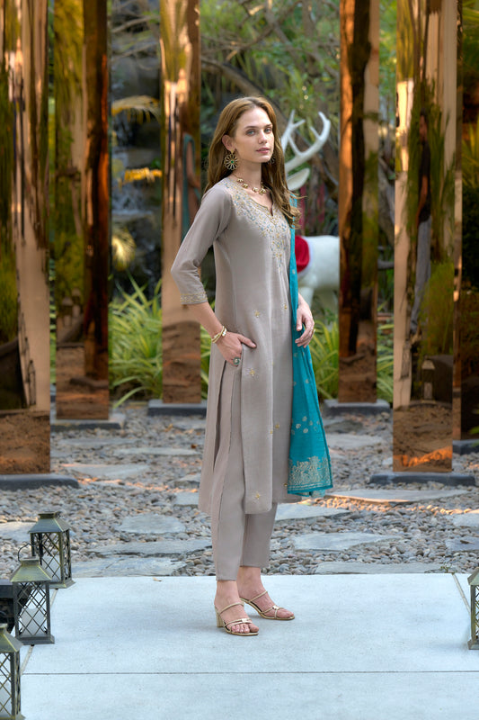 Elegant Silk Blend Embroidered Kurta Set with Dupatta | Traditional Ethnic Wear for Women